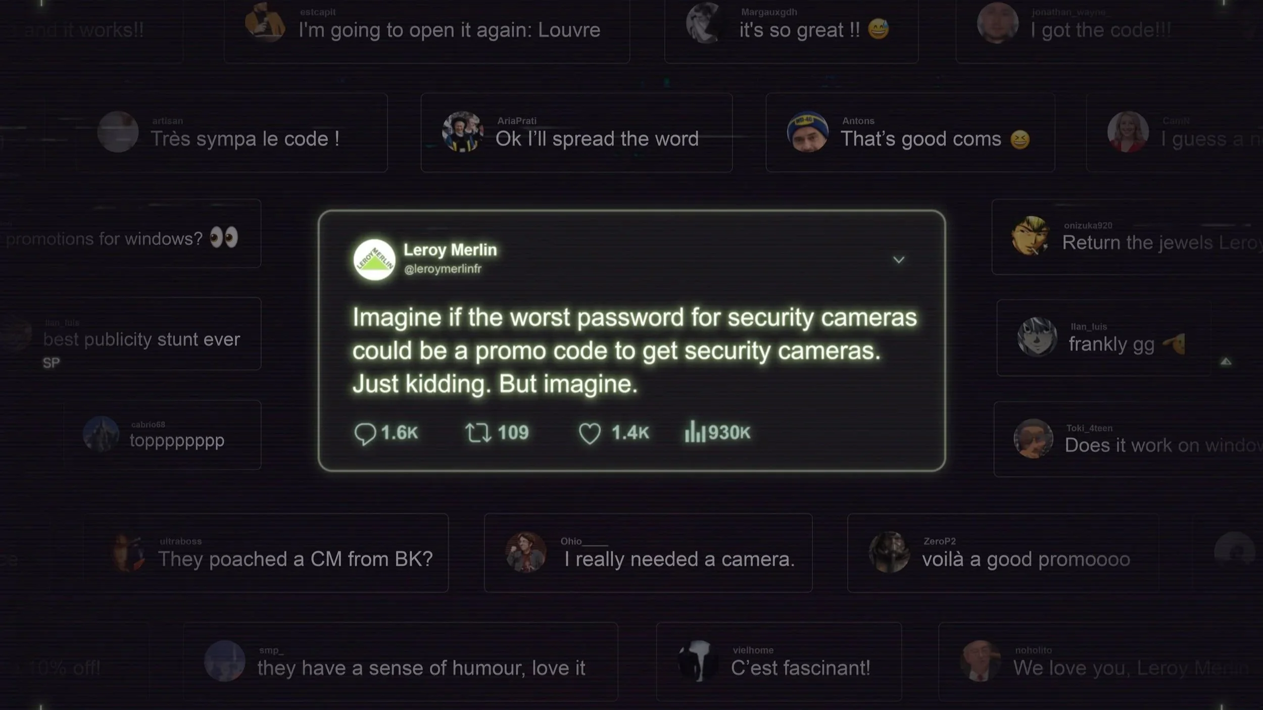 When the world discovered that the Louvre’s surveillance password was… “LOUVRE”, everyone had a laugh. Leroy Merlin decided to turn it into something useful. Introducing The Password Heist: use the same password as a promo code to get a discount on home security cameras.